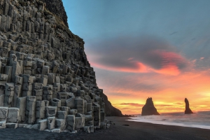 曾被列為世界十大最美海灘之一,黑色的玄武岩是火山熔岩的傑作,經長時間海風與海浪的精雕細琢,把玄武岩磨成了黑沙,形成冰島極富盛名的景點,純黑的沙與純白的浪交織成一幅冰島與世無爭的美麗海岸線。