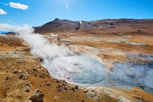 米湖是冰島的第四大湖。由於其寧靜、鳥類和火山活動,該湖及其周邊地區是該國最令人驚嘆的自然景點之一。湖泊坐落在一個非常活躍的地熱區,賦予它獨特而美麗的地質。它靠近克拉夫拉火山口等景點,那裡有臭名昭著的維蒂火山,其名字的意思是“地獄”。
