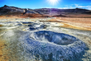位於冰島東北部,米湖東側。您會看到許多冒煙的噴氣孔和沸騰的泥鍋,周圍環繞著許多不同顏色的硫磺晶體。這種硫磺使該地區散發出強烈的雞蛋味。由於這些地熱過程造成的酸性,該地區的土壤幾乎沒有植被。