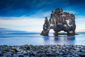 坐落於冰島西北部的胡納灣中,是瓦斯半島東岸海中15米高的玄武巨岩。岩石底部有兩個孔,隨著潮漲潮落,岩石露出海面的部分不斷變換形狀,故有犀牛石、象鼻石、巨怪石之稱。犀牛石的冰島語名意為「白襯衫」,指的是鳥類的白色排泄物覆蓋著黝黑岩石的情況。