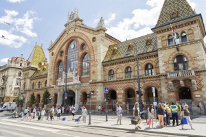 中央市場外牆貼滿美麗磁磚,外觀雄偉,內部挑高透光,典雅的外觀很難將它和市場的印象連結在一起。除了販售各式生鮮,鵝肝醬、葡萄酒和香料也是各攤位最醒目的商品,市場二樓則有許多紀念品店及當地小攤販,可一窺布達佩斯人們的日常生活。