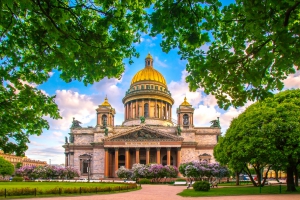 為了紀念彼得大帝誕生而建,高101.5公尺,耗時40年於1858年完成,被視為俄羅斯晚期古典主義建築的代表。金碧輝煌的金黃色圓頂,四面各有16根遠自芬蘭運來的紅色花崗岩大柱,搭配青銅打造的底座和柱頭,堪稱聖彼得堡最宏偉的教堂。