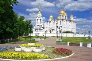 建於1164年,莫斯科克里姆林宮的聖母升天教堂即是以此為藍本,1475年伊凡三世興建石造教堂代替舊有的木造建築,成為古俄羅斯建築典範,所存的壁畫及聖像畫更是宗教藝術史的珍寶。並立的◎聖德米特里教堂正面雕滿動植物及山川河流的圖案,美不勝收。