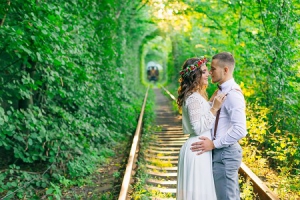 位於烏克蘭的克萊文鎮,克萊文鎮(Klevan)離烏克蘭裡夫寧市不遠,距離基輔則有近400公里的路程。因為「愛情隧道」的存在,使得小鎮熱鬧了不少,原先是供火車行駛的鐵道,也許是鮮少使用,細細的兩條軌道幾乎被充滿活力的草兒們給蓋了下去。
