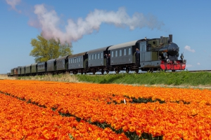 來到北海搭乘復刻版的蒸汽火車穿越時空,坐在板椅上停、看、聽火車運行的氣閥與輪動以及窗外的風景,懷想當年從這裡絡繹不絕出發的船隻與商隊,航向遠洋展現荷蘭黃金時代的輝煌。在初春時節,沿途的繽紛花田是荷蘭獨有的大地花毯。