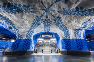瑞典斯德哥爾摩的地鐵系統有三條主要線路,100個車站,其中地下站47站,地面地上站53站。最早的地鐵開始於1950年,斯德哥爾摩地鐵以其車站的裝飾聞名,號稱世界上最長的藝術長廊,一直讓當地居民引以為傲。