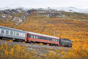 特別安排搭乘北極圈列車從瑞典阿比斯庫旅遊站跨境前往挪威峽灣之城的納維克,在不到二個小時的車程中,穿越曾經只有薩米人居住的拉普蘭土地,飛馳而過令人眼花繚亂的橋樑和隧道,從樹林密佈的緩丘過渡到峽灣切割的港灣。