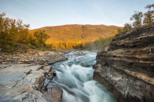 8000年前冰河時期侵蝕而成,在冰河消融後河水繼續侵蝕河谷造成的特殊景緻,峽谷地形是讓這裡成為瑞典第一座國家公園的重要原因之一,河流最後注入托納湖。公園內2號步道沿著峽谷而建,橫跨河流兩岸可從不同角度觀賞峽谷地形,是老少咸宜的一條步道。