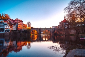 古橋是城市的象徵,優美的拱形跨在幽靜緩流的河面,串連著大教堂和主要商業街。橋梁兩側曲型靠座正好讓人在此停留閒聊、眺望河景!拱橋倒影畫面引人入勝,河邊街上餐廳、咖啡館人聲鼎沸!