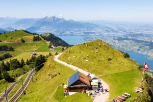 被稱為「山中皇后,是瑞士中部的著名山峰。山上的觀景平台可以360度飽覽周圍的湖泊、山脈和村莊,將琉森湖、楚格湖等美麗的湖泊盡收眼底。它也是歐洲最早的齒輪軌道火車的所在地,擁有悠久的歷史。