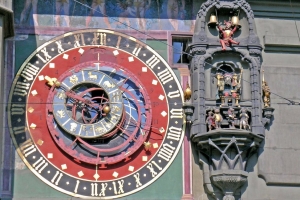 伯恩地標 十三世紀的鐘塔,曾經是伯恩市西城門的鐘塔,位於克拉姆街(Kramgasse)的城門上,第一層的天文鐘建於1218年,至於目前鐘塔的規模則是1771年間完成。