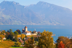 瑞士圖恩湖畔的迷人小鎮,被譽為「阿爾卑斯山腳下的里維埃拉」,本身也是一個交通的轉運樞紐。這裡群山環繞,湖泊瀰漫著空靈氣息,偶可見帆船輕點湖面,岸邊則錯落著典雅的木屋與古老城堡。