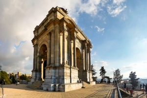 紀念凱旋門聳立於君士坦丁的山丘,695公尺高的羅梅爾河畔,是20世紀初法國為紀念一戰陣亡士兵而建的標誌性建築。這座21公尺高的凱旋門融合羅馬與法國風格,靈感源自提姆加德的圖拉真拱門與巴黎凱旋門,頂部勝利女神像俯瞰城市,展現莊嚴與榮耀。