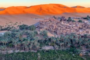 阿爾及利亞撒哈拉的沙漠明珠,位於大西洋沙海邊緣。金色沙丘高聳,環繞20公里棕櫚林綠洲,與薩烏拉河谷相依,風景如畫。11世紀塔吉特堡壘屹立古城,泥磚巷弄訴說千年歷史。塔赫塔尼亞岩畫描繪史前生活,巴魯恩山脈展現地質奇觀。