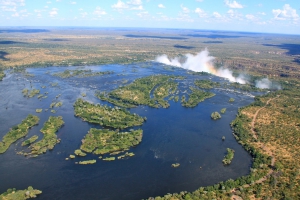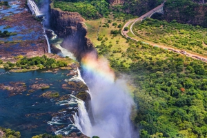 位於非洲尚比西河中游,尚比亞與辛巴威接壤處,為世界著名瀑布奇觀之一。沿著觀景步道往前走,不時傳來的轟然巨響與瀰漫在空中的水霧預告著「偉大的存在」。氣勢磅礡、雄偉壯闊,水氣迷漫天際,猶如雲霧飄渺,深谷、斷崖、瀑布……景致之美,令人嘆為觀止。