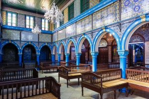 突尼西亞的猶太人大部分都居住在傑爾巴島。這座大規模翻修於19世紀的建築也是非洲最古老的猶太會堂,據說遺址歷史可追溯到西元前586年巴比倫人摧毀所羅門聖殿後,逃亡至此的大祭司們,將被毀聖殿的一扇門和石頭也帶來了傑爾巴島。