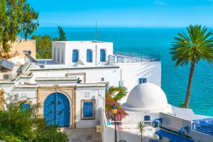 地中海濱的夢幻藍白小鎮,沿山勢蜿蜒而上的鵝卵石街道兩邊是陽光下閃閃發亮的白色房屋,鑲嵌著藍色的門窗,搭配著圓頂拱門、伊斯蘭式的蔓藤渦卷、星月圖案,迷人景致是藝術家與作家聚集之地,也是美國國家地理雜誌評選的世界十大浪漫小鎮之一。