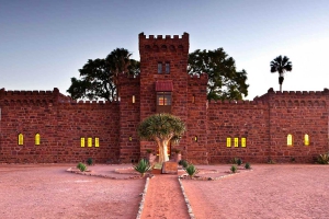 由德國軍官漢斯與其美國籍妻子於1909年建造,作為新婚居所。城堡由當地紅砂岩砌成,其餘建材如門窗、家具與裝飾品等,皆來自德國並經遠洋船運抵達納米比亞,再由牛車運送至這片荒涼之地。不幸的是,漢斯於一戰時戰死,其妻亦輾轉返美,浪漫結局終未成真。