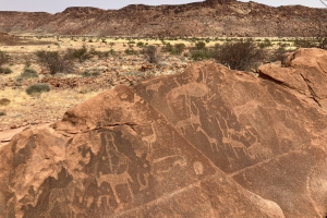 是納米比亞西北部庫內內區的一處岩畫景觀。當地源於砂岩質平頂山坡面的山谷兩側有泉水流經,降雨量少且晝夜溫差大。
