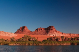 查德的烏尼昂加湖群,包含18個相互連接的湖泊。這些罕見的永久性湖泊位於撒哈拉沙漠超乾燥的恩內迪區(Ennedi region),散布面積達62,808公頃。湖群驚人的色彩和形貌構成了一處景色壯麗的特殊自然地景。