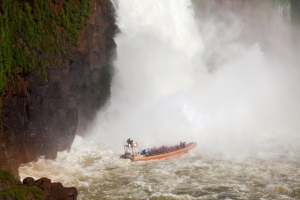 在巴西的伊瓜蘇瀑布,除了在觀景平台上感受其魄力之外,更可乘坐瀑布橡皮艇,全速奔馳,逆流而上,衝向魔鬼咽喉瀑布峽谷,直抵主瀑布正前方,洶湧澎湃的急流,和氣勢萬千的瀑布,驚心動魄。