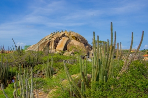 阿魯巴位於委內瑞拉北方外海,屬於加勒比海地區的島嶼。現為荷蘭聯合王國四個海外自治領土之一,首都為橘城。雖人口少面積小,卻因雨量稀少,所在位置緯度適中,終年都是陽光、白色沙灘伴著藍色海洋,加上社會治安相當好,成為歐美度假首選