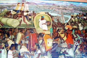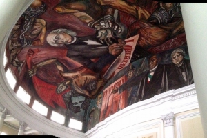 墨西哥壁畫中最有名的當屬裡維拉的巨作「墨西哥歷史與未來」,這幅壁畫現珍藏於國民宮中央樓梯的迴廊上,高約5-6公尺、長達數十公尺,共有1000多個人物,氣勢磅礴,全景式地展現了墨西哥淪為西班牙殖民地前的印第安社會到本世紀的全部歷史。