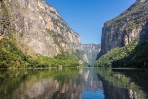 蘇米德羅峽谷,是2009年代表墨西哥角逐世界新七大自然奇觀之一。峽谷中的格裡哈爾瓦河宛若碧綠色的狹長翡翠,流淌在河谷間,兩旁有機會看見野生鱷魚躺在岸邊曬太陽。