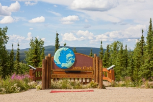 在這裡,您將沿著美國唯一一條維護良好、穿過極地入口的道路 正式進入北極圈。北極圈是一條理論線,太陽在夏至時不落下,冬至時太陽不升起。在美國,北極圈穿過阿拉斯加,土地管理局已經在這個位置標示了標誌。