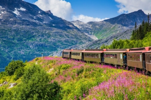 白口古董火車行駛在貫穿美、加兩國的克朗代克公路上,這條經典路線亦是昔日淘金客由史凱威往返加拿大育空的熱門淘金路線,沿途可觀賞過去冰川底部奇景、瀑布、山谷等風景。