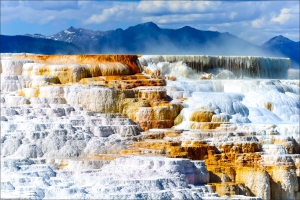 美國黃石公園中的猛獁溫泉,是世界上已探明的最大的碳酸鹽沉積溫泉。它最顯著的特點當屬米涅瓦階地,那是幾千年來冷卻沉澱的溫泉水所形成的一連串階地。