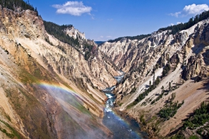 位於黃石公園正中央,最容易看到熔岩地層的地方,是由黃石河道持續沖刷出的V型山谷,斑斕多彩的峽谷峭壁景觀,以黃色為主色調,點綴些許白、棕、紅、紫、綠和墨色。蜿蜒曲折的滾滾黃石河由西向東穿行流過黃石大峽谷,宛如美麗多彩的畫境。