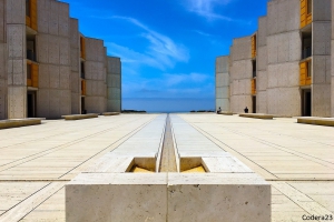 沙克生物研究中心是路易斯康最著名的代表作之一。寬闊的中央中庭設計了一條「生命之流」水道從廣場延伸至太平洋, 此作品被稱為是幾何、光線與沉靜空間的極致之作。