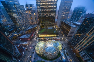 亞馬遜在總部西雅圖建造了一個特殊景觀建築的玻璃球。玻璃球於2018年一月分完工,開放給亞馬遜員工,做為休息,開會,工作的場所,平日不開放民衆參觀,只有一樓大廳開放。如果民衆想參觀,可以上網登記每個月的第一和第三個星期六開放。