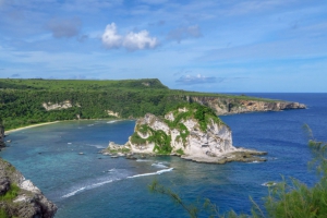 位於塞班北部由石灰岩構成的鳥島,許多海鳥喜愛在此棲息休憩,由岸邊望去,鳥的顏色隨著沙灘及海水的反射,閃閃發亮,是遊客最愛的拍照地點。