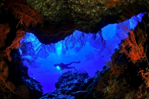 是一個著名的潛水點,可以發堀奇異的海底世界,可以觀賞各類熱帶魚。由於海底珊瑚礁有三個大洞與外海相通,每週陽光由此照射進來,如貓眼般的海水振人心弦。