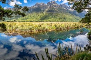 米佛峽灣的魅力不僅止於海上,由蒂阿瑙前往米佛峽灣的120公里,沿途景色優美。埃格林頓峽谷遼闊的草原景觀;水草搖曳生姿,清澈水面猶如鏡子般反射山巒倒影的◎鏡湖;源自附近的高山融雪,味道甘甜,水質清澈的猴溪,引人入勝的自然風光隨著前行逐一展現。