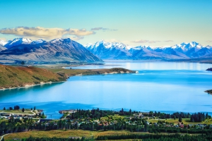 閃耀著土耳其藍的湖泊,如藍寶石般墜落在南阿爾卑斯山的懷抱,湖畔靜靜佇立著石造教堂和守護著這片土地的牧羊犬,眺望遠方綿延山巒。人口不到500人,猶如童話般的寧靜小村莊,是紐西蘭知名的觀星地點,夏季時繽紛綻放的魯冰花為這兒增添了一抹浪漫氣息。