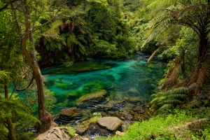 藍泉泉水源歷經數十年甚至百年的時間在岩層沈澱過濾後流入Waihou River,溪水水溫終年維持在11度左右。近看那純淨透澈溪水中藻類植物清柔的擺動,如夢似幻的藍綠河水令人不由得讚嘆大自然。其極致純淨的水質,亦是許多紐西蘭瓶裝水的水源。