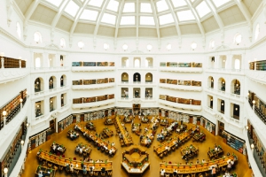 名列世界前十大圖書館,維多利亞圖書館宏偉的八角形穹頂,採自然透光設計,以八角形的閱讀桌為中心,呈輻射狀的放射延伸。碧綠桌燈搭配木質桌椅,細膩典雅。舒適的閱讀環境,不論平假日,總是聚集著眾多的知識渴求者。走入其中參觀,心也不禁沉靜起來。