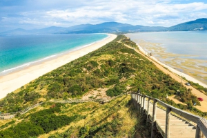 布魯尼島位於荷伯特南方,面積為322平方公里,需由凱特林搭乘渡輪前往,是深受遊客喜愛的度假勝地。這裡擁有壯美的野外地貌奇觀、潔白的沙灘,連結南北兩島的狹長沙岬上的觀景台,能俯瞰美麗的海灣。鄰近海域出產鮮美的生蠔,深受許多美食家的喜愛。