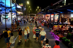衝浪者天堂的心臟地段熱鬧非凡,充滿活力,聚集了時尚精品店、咖啡館、餐廳與酒吧,購物、用餐與夜生活在此交織出多彩日常。緊鄰著名的金色沙灘,白天沐浴陽光、迎接海浪,夜晚燈火通明、人潮湧現,從這裡出發,便能深入感受黃金海岸的魅力與動感節奏。