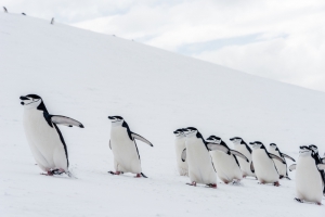 是現存企鵝之中體型最大的品種,亦是唯一會在南極酷寒環境下過冬的動物,威德海路線最有機會能一睹芳蹤。帝王企鵝孕育孩子的方式極為艱辛,母親產下蛋後便會去大海覓食,爸爸企鵝必須接手孵化,在九個星期的漫漫長夜之中,靠著群體的力量互相取暖、抵禦風寒。