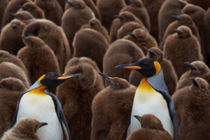 是企鵝家族中體型第二大的屬種,成年可長到約90公分,全世界數量約有400萬隻。國王企鵝和他的近親-皇帝企鵝一樣,都不會築巢,而會把蛋放在雙腳下孵化。國王企鵝是群居性動物,飲食和居住都由很多個體聚集在一起。每當惡劣的氣候來臨,會擠在一起取暖。