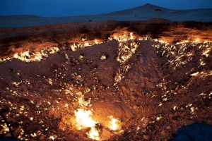 據信前蘇聯地質學家於土庫曼探勘時,意外發現天然氣地下洞穴,為防止天然氣及有害毒氣影響人體健康,決定點燃外溢的天然氣。原以為幾天就能平息的火焰,直至今日燃燒了近40個年頭,形成現在獨一無二的奇景。