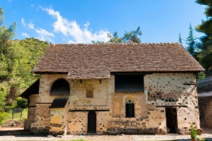始建於 11 世紀,其獨特之處在於為了抵禦特羅多斯山區的厚重大雪,於 12 世紀在原有的拜占庭圓頂上加蓋了第二層陡峭木頂。步入其中,牆面滿佈跨越 11 至 17 世紀的珍貴壁畫,宛如一部綿延六百年的東正教繪畫編年史,訴說著拜占庭藝術的演變。