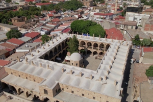 建於 1572 年,這座兩層樓高的堡壘式建築曾是絲路商旅與駱駝隊的繁華歇腳處。庭院中央矗立著極為罕見的八角形高架小清真寺 ,下方設有淨身泉水,展現了經典的伊斯蘭建築美學。昔日的商號已轉變為傳統工藝工作室與露天咖啡座,讓旅客能在其中享受悠閒。