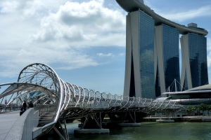 新加坡螺旋橋,又稱雙螺旋橋,是連接濱海中心與濱海南的步行橋,以其獨特的雙螺旋結構設計而聞名,其靈感來自於DNA的雙螺旋結構,象徵著生命和延續。