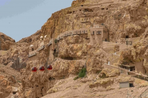 位於耶利哥城,聖經裡記載著耶穌在這裡禁食禱告四十天後,三次受魔鬼試探的故事,瑪竇和路加詳細記載耶穌三次受魔鬼試探的故事。二者都報導耶穌的第一個試探發生在荒野中,魔鬼企圖引誘飢餓的耶穌「變石頭為餅」。因為如此,這座山才被命名「試探山」。