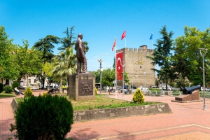 特拉布宗的熱鬧市區地帶與市民交通樞紐,廣場公園周圍聚集了許多露天咖啡座與餐館,附近的街道展示著許多流行服飾與商品。